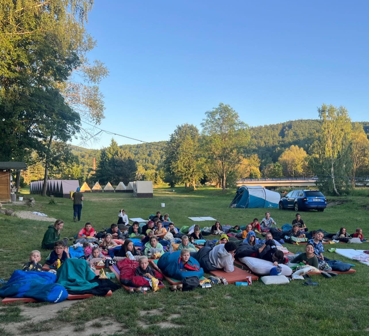 Kvalitní spací pytel je základ, protože i v létě mohou být noci ve stanu chladné. Polštářek zajistí dětem pohodlnější spánek. Karimatka není nutná, protože ve stanech jsou měkké podložky, ale hodí se pro případné spaní pod širákem nebo pro větší komfort. Deka se může využít nejen na přikrytí, ale také při sezení venku. Baterka se bude hodit pro orientaci po setmění a pro večerní aktivity. Velmi důležité je také termoprádlo nebo teplé pyžamo a hrubé ponožky, aby děti v noci neprochladly a dobře se vyspaly.